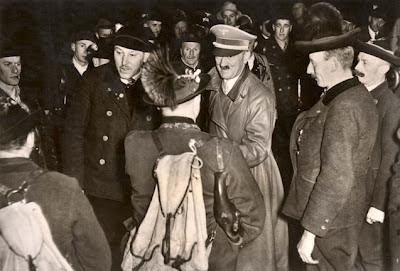 Treinta años más tarde, viene esa escena de película; cuando Hitler bien podía haberse mostrado arrogante con un simple funcionario de provincia; y, sin embargo, olvidó tan abismal diferencia, y dialogó con su contertulio de la forma más agradable. He aquí un punto que particularmente me gusta de Adolfo, su sencillez, era verdaderamente humano con los humildes -caso contrario siempre demuestran los pudientes de cuna- Sin lugar a dudas, nunca relegó de sus orígenes.
